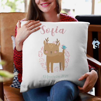 Almofada com nome e dados de nascimento