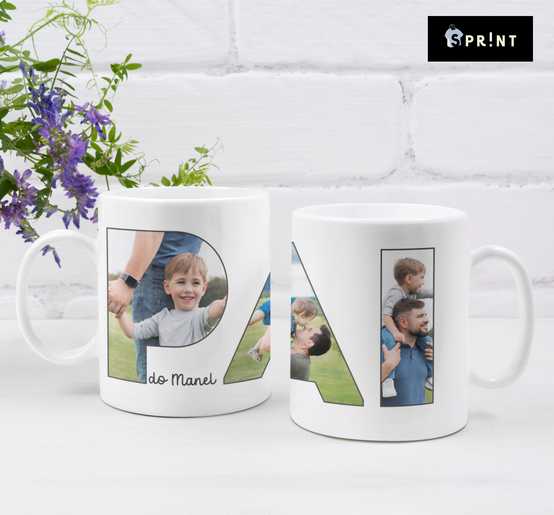 P A I com fotografias dentro das letras e o nome do(s) filho(s)