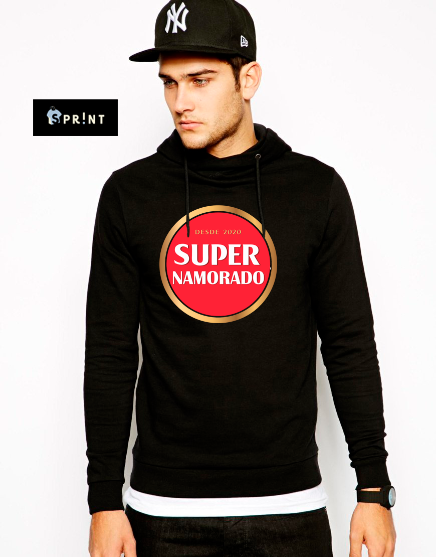 Sweatshirt preta com capuz e estampa vermelha e branca