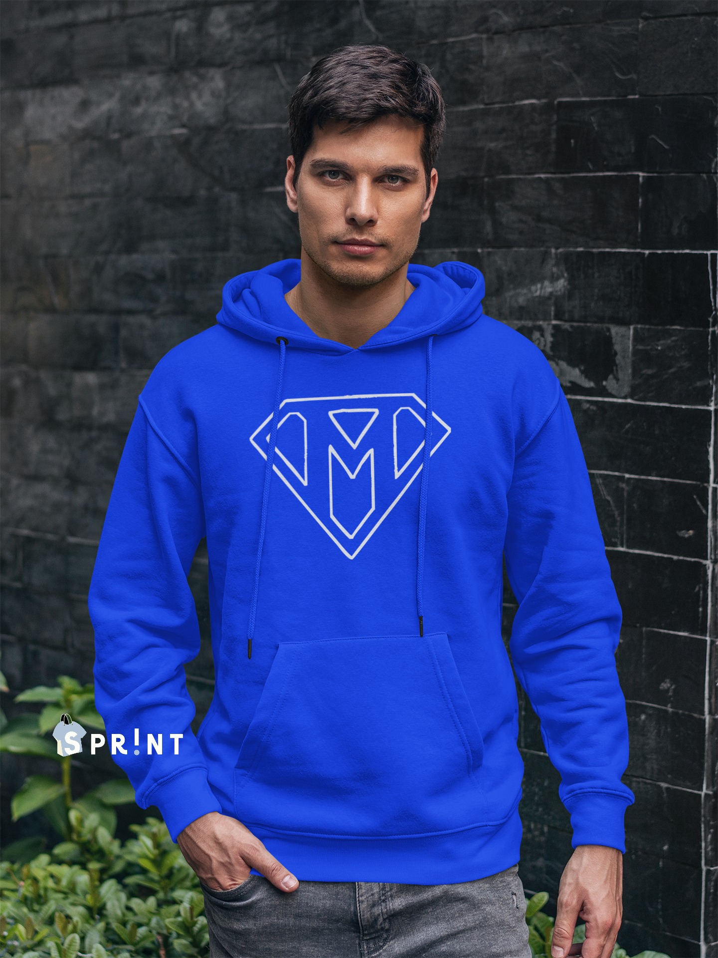 Casaco de capuz azul com logótipo branco